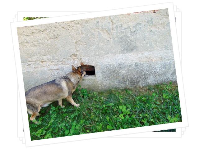 Auch die hintere Ansicht (Nordseite) des Grundstücks wurde fotografisch festgehalten, um eben wirklich und möglichst alle Perspektiven der gesamten Hausseiten sichtbar zu machen. So kann der Käufer auch diese Bausubstanz einschätzen und sehen, was eventuell zu renovieren wäre oder eben nicht. Auf einem Bild erfreut sich mein Hund Toni an der auströmenden Luft (um die 12 Grad über das gesamte Jahr) des hinteren Luftschachtes des Gewölbekellers. Und die letzten vier Bidler zeigen Aufnahmen vom zugehörigen Feld.