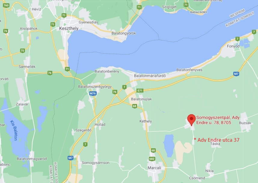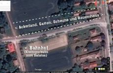 Das gesamte Anwesen macht 3.660 qm aus und es ist hier aus der Vogelperspektive zu sehen und hier in der Entfernung zum Balaton.