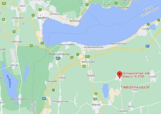 Die Lage der Objekte: 12 km bis zum Balaton